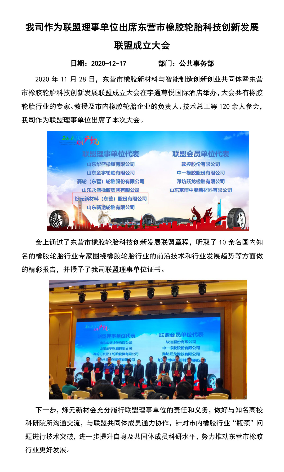 我司出席東營市橡膠輪胎科技創新發展聯盟成立大會 - 公司新聞 - 石家庄义浩机械制造有限公司