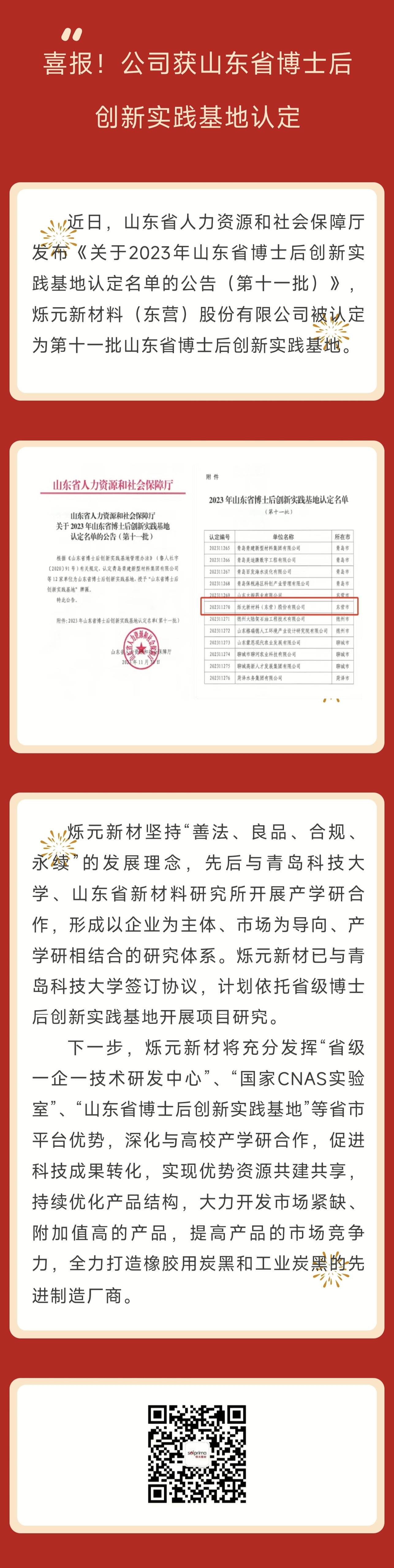 喜報(bao)!公司獲(huò)山東省(shěng)博士後(hòu)創新實(shí)踐基地(dì)認定