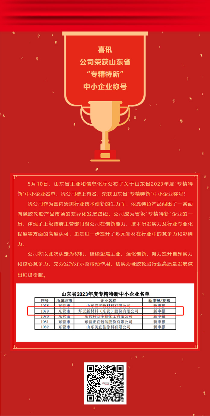 喜訊(xun)!公司榮(róng)獲山東(dōng)省“專精(jīng)特新”中(zhong)小企業(ye)稱号