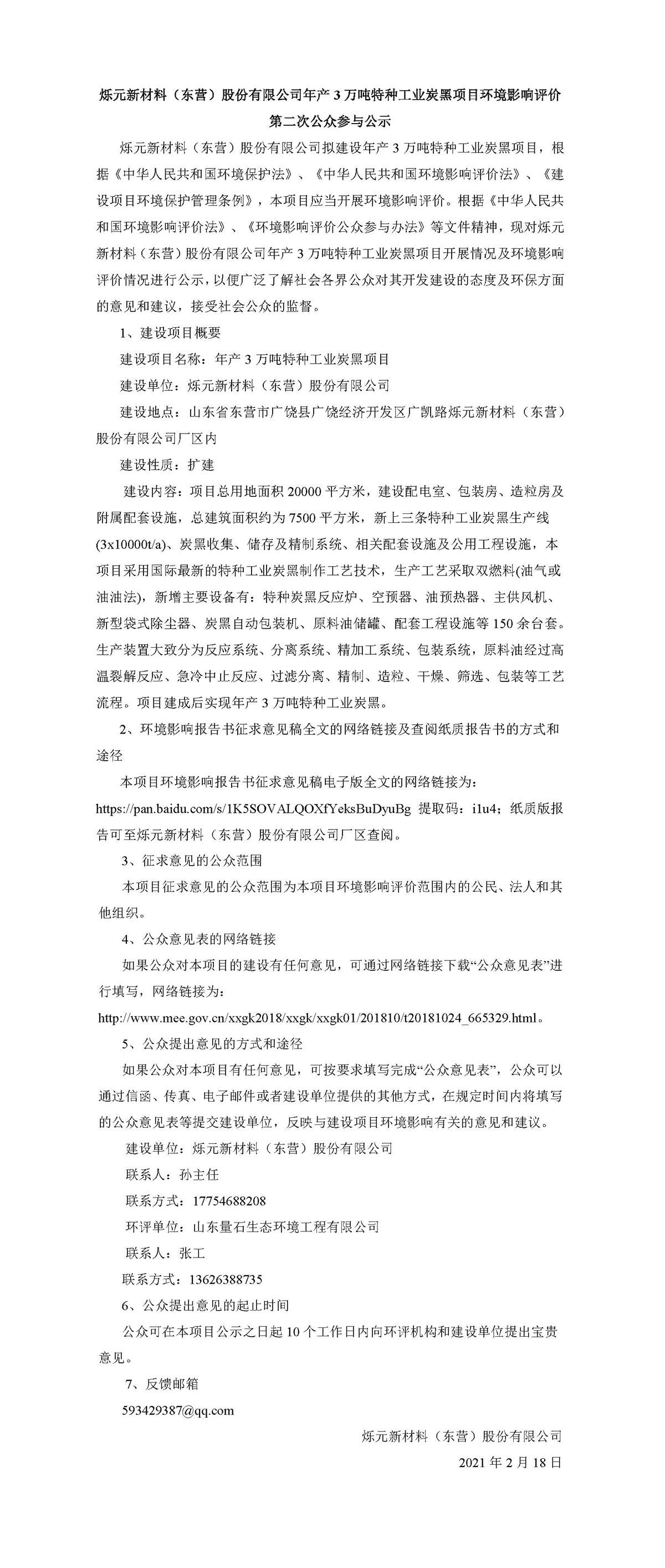 公司年産3萬噸特種工業炭黑項目環境影響評價第二次公示 - 信息公示 - 石家庄义浩机械制造有限公司