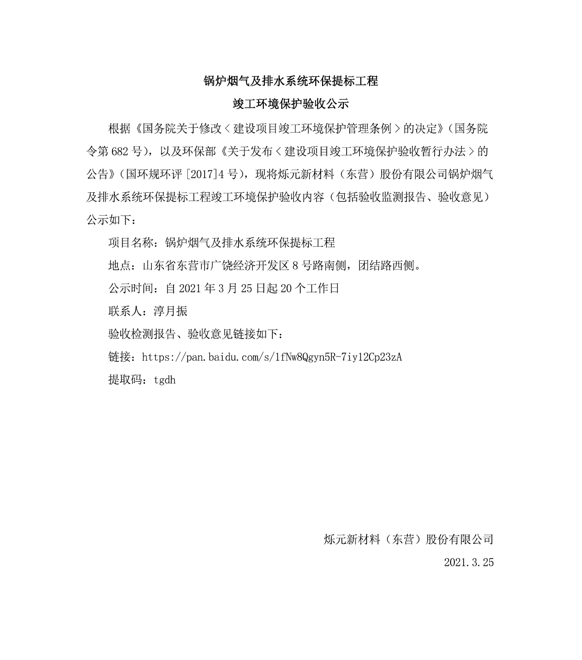 鍋(guo)爐煙氣及排(pái)水系統環保(bǎo)提标工程 竣(jun)工環境保護(hu)驗⭐收公🏒示