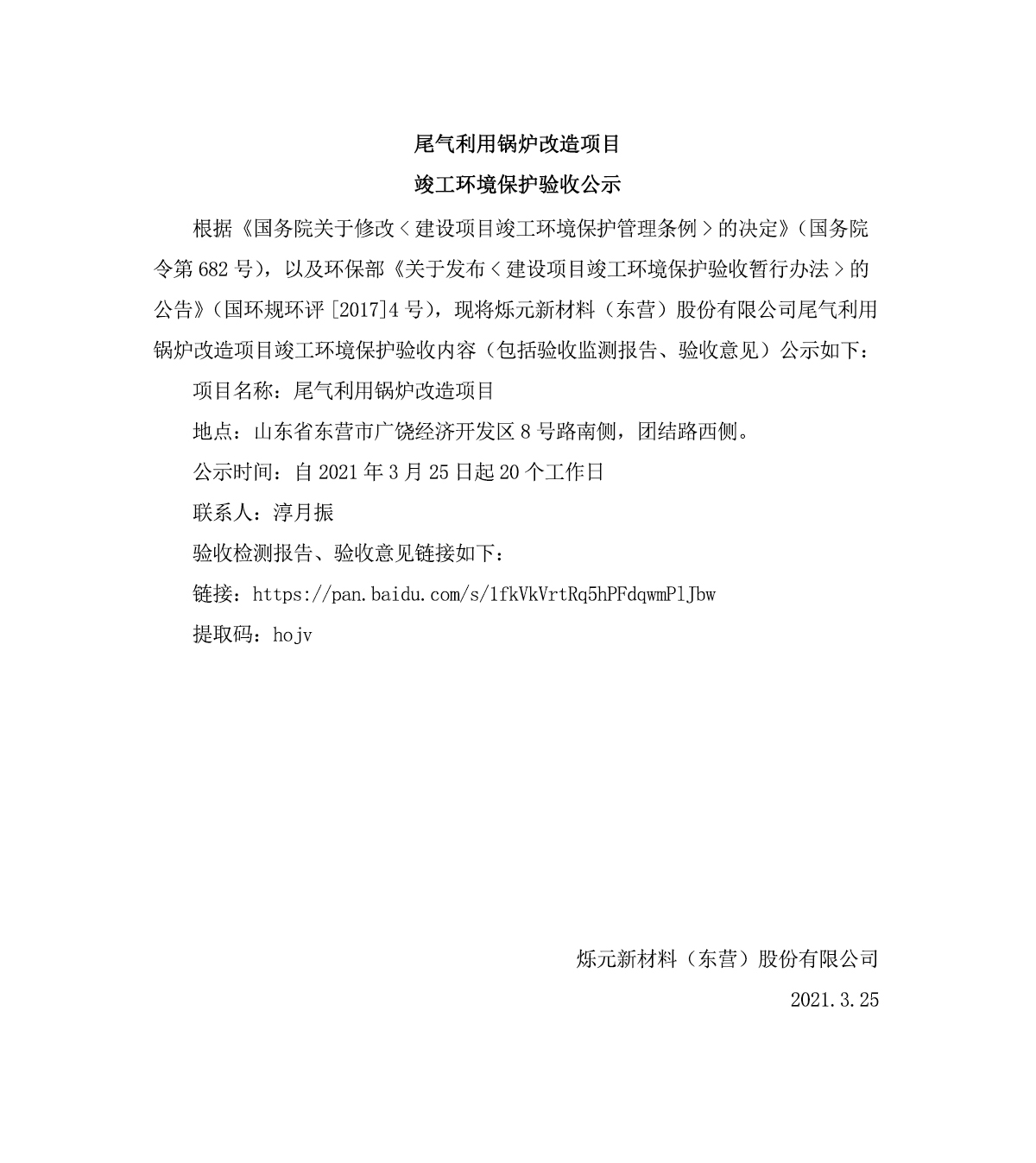 尾(wěi)氣利用鍋爐改造(zao)項目竣工環境保(bǎo)護驗收公示