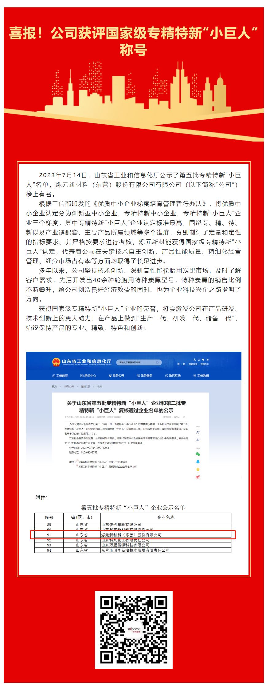 喜報!公司獲評國家級專精特新“小巨人”稱号 - 公司新聞 - 石家庄义浩机械制造有限公司